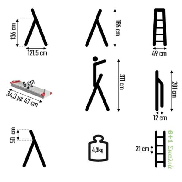 Σκάλα αλουμινίου 6+1 σκαλιά