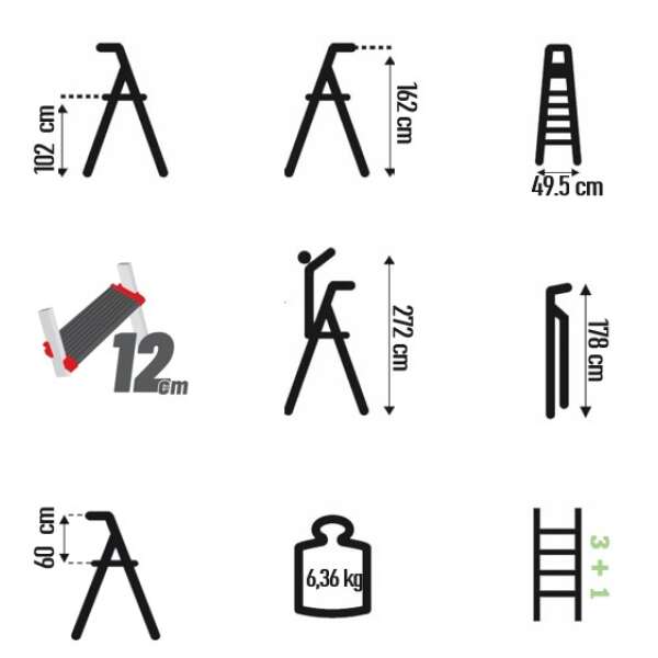Σκάλα αλουμινίου 4×3 σκαλιά