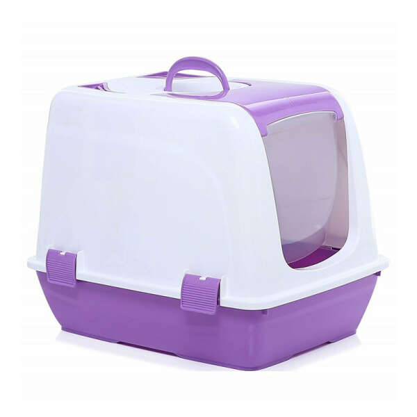 Τουαλέτα γάτας 38×49.5x40cm Λευκό-Μωβ Σκούρο