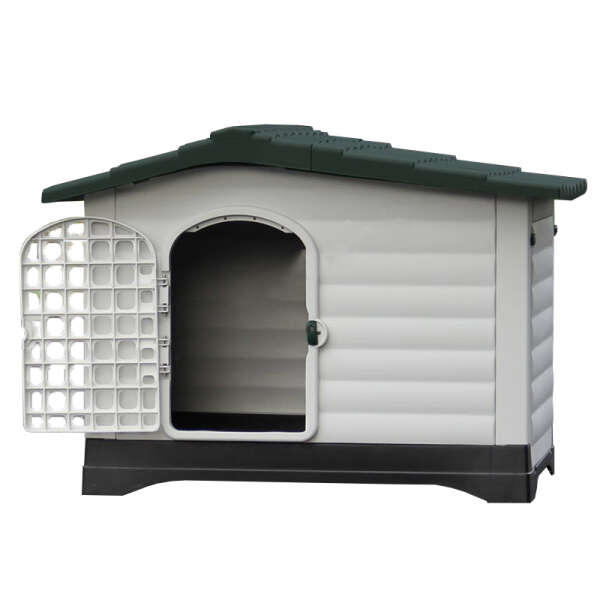 Πλαστικό σπίτι σκύλου με πόρτα 91.4×68.9x66cm γκρι-πράσινο