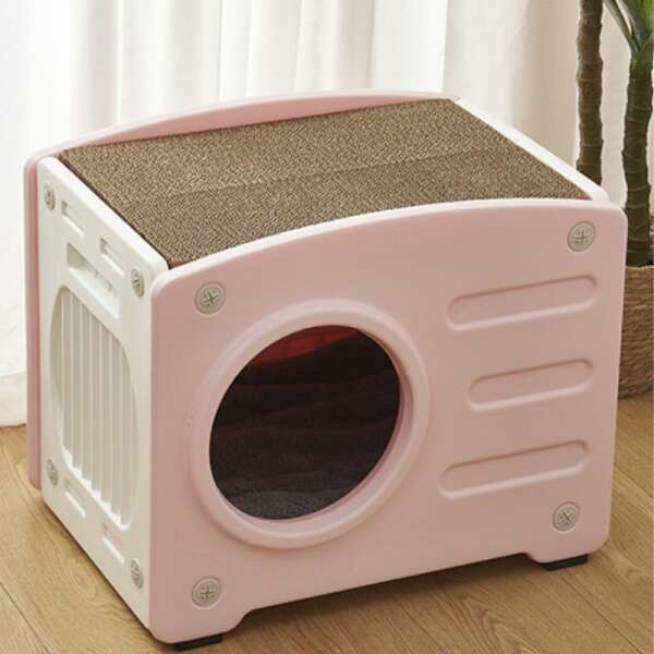 Πλαστικό σπίτι γάτας 56×41.7×46.2cm ροζ-λευκό