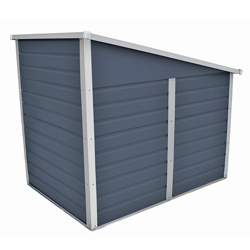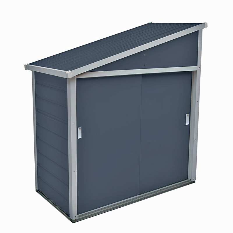 Γαλβανιζέ αποθήκη κήπου με συρόμενες πόρτες και επικλινή στέγη.