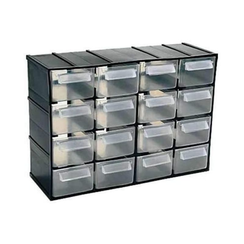 Σύστημα αποθήκευσης πολλαπλών χρήσεων από πολυπροπυλένιο με 16 διάφανα συρταράκια 8,7 Χ 13 Χ 5,5cm έκαστο.