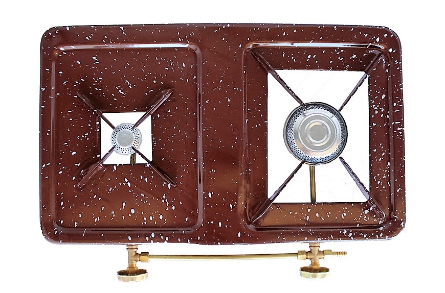Επαγγελματικό πετρογκάζ με 1,5 εστία μαγειρέματος, κατασκευασμένο από μέταλλο με εμαγιέ επίστρωση.