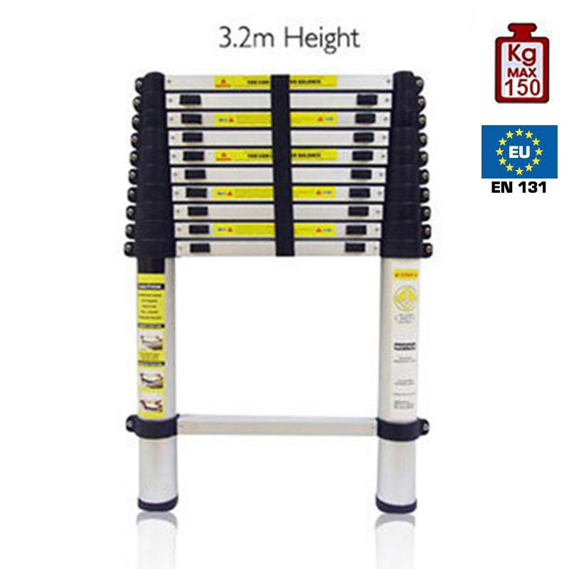 Τηλεσκοπική σκάλα με 10+1 σκαλιά από αλουμίνιο με πλαστικές λεπτομέρειες.