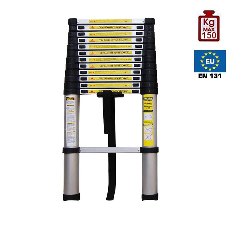 Τηλεσκοπική σκάλα με 12+1 σκαλιά από αλουμίνιο με πλαστικές λεπτομέρειες.