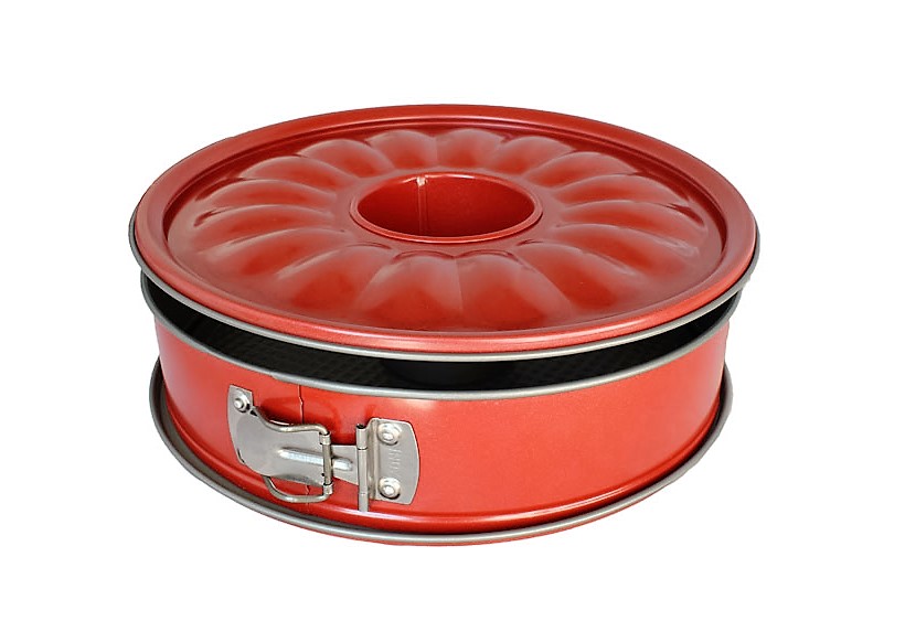 Αντικολλητική φόρμα ζαχαροπλαστικής από ανθεκτικό στη θερμοκρασία αλουμίνιο. Αποτελείται από 3 εξαρτήματα: Μια επίπεδη βάση κατάλληλη για την παρασκευή γλυκών με ενιαία επιφάνεια, μια βάση με κώνο για κέικ και ένα λυόμενο τσέρκι.