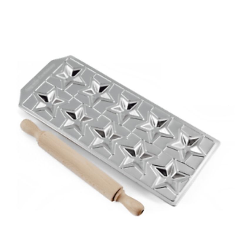 Φόρμα design Raviolamp 10 θέσεων αλουμινίου για ζυμαρικά Stelline + ξύλινος πλάστης
