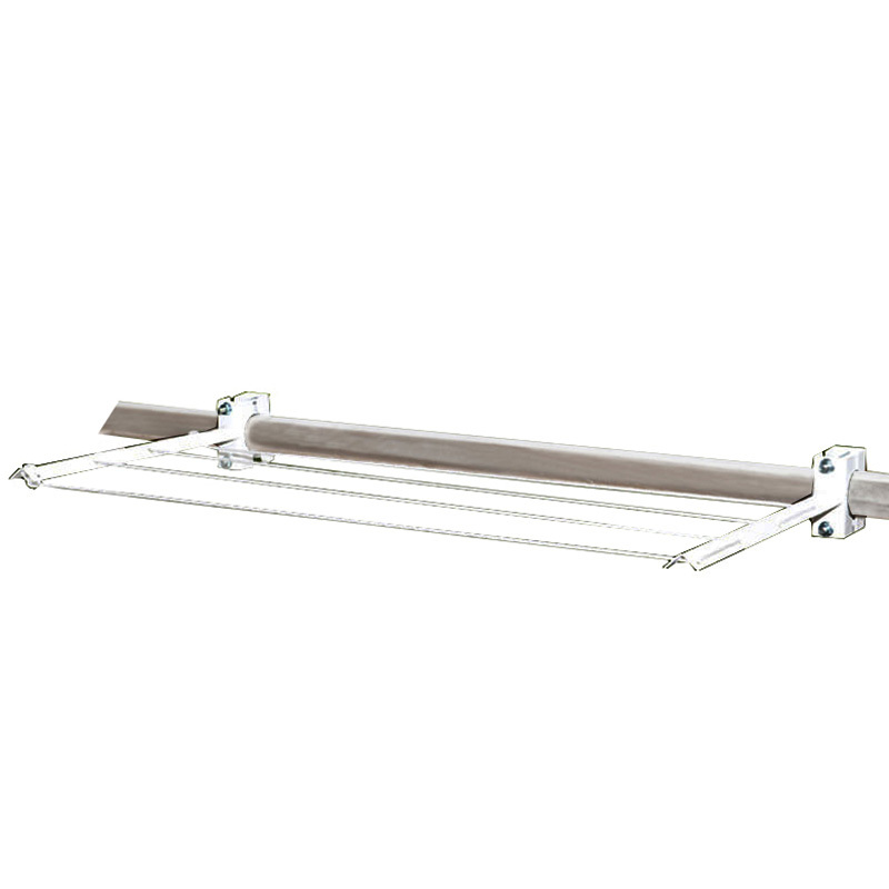 Απλώστρα ρούχων μεταλλική, βαμμένη, που εφαρμόζει με βίδες σε κάγκελα με στρογγυλή κουπαστή διαμέτρου 5 εκατοστών. Αποτελούμενη από δύο βραχίονες που διαθέτουν τέσσερις θέσεις.