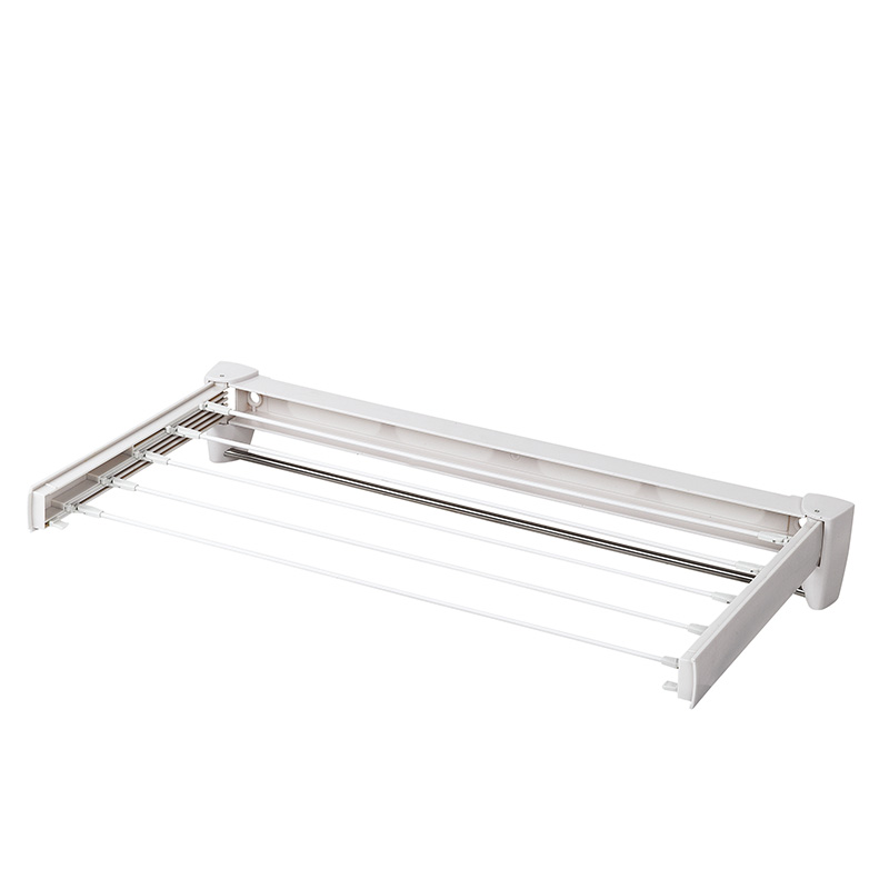 Πτυσσόμενη απλώστρα τοίχου από πλαστικό, μεταλλικές βέργες βαμμένες ηλεκτροστατικά και 1 ανοξείδωτη βέργα. Περιλαμβάνει βίδες-ούπα για τη στήριξη.