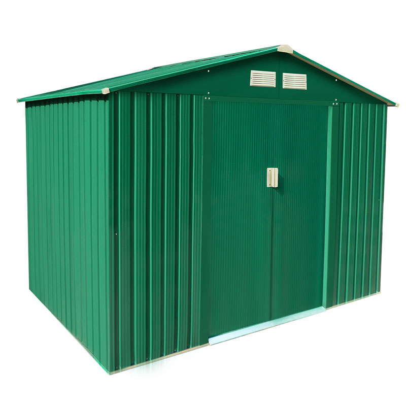 Μεταλλική αποθήκη κήπου κατασκευασμένη από ηλεκτρογαλβανισμένο εν θερμώ χάλυβα (HDG Steel) βαμμένο με ειδική πολυεστερική βαφή για μέγιστη αντιδιαβρωτική προστασία και διάρκεια ζωής, καθώς και ισχυρές δοκούς από ηλεκτρογαλβανισμένο εν θερμώ ψευδάργυρο, με υψηλή αντοχή στις ακραίες καιρικές συνθήκες.