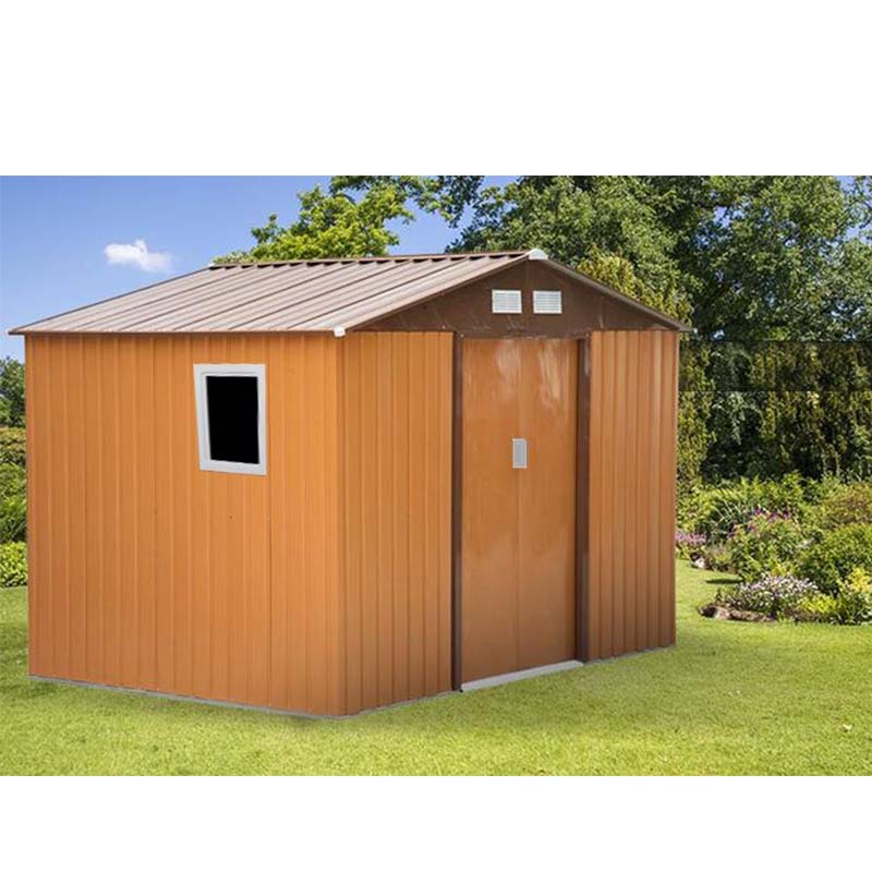 Μεταλλική αποθήκη κήπου κατασκευασμένη από ηλεκτρογαλβανισμένο εν θερμώ χάλυβα (HDG Steel) βαμμένο με ειδική πολυεστερική βαφή για μέγιστη αντιδιαβρωτική προστασία και διάρκεια ζωής, καθώς και ισχυρές δοκούς από ηλεκτρογαλβανισμένο εν θερμώ ψευδάργυρο, με υψηλή αντοχή στις ακραίες καιρικές συνθήκες.