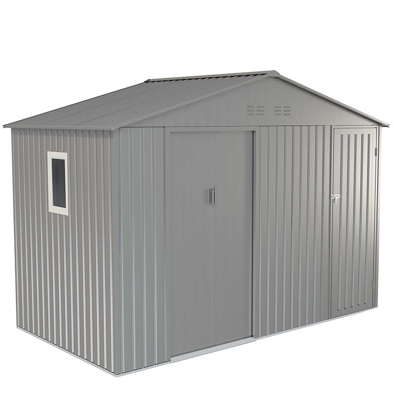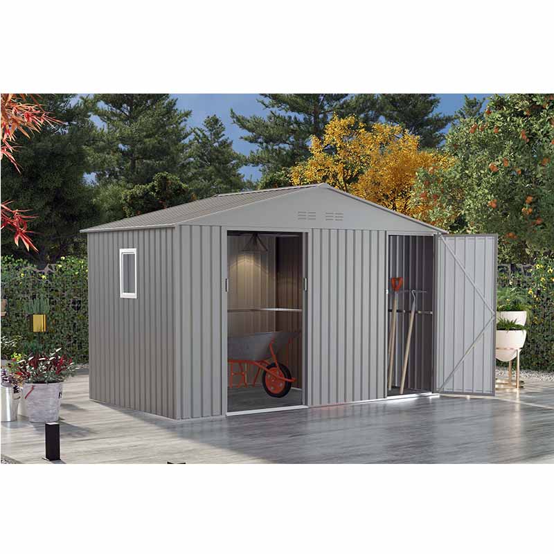 Μεταλλική αποθήκη κήπου κατασκευασμένη από ηλεκτρογαλβανισμένο εν θερμώ χάλυβα (HDG Steel) βαμμένο με ειδική πολυεστερική βαφή για μέγιστη αντιδιαβρωτική προστασία και διάρκεια ζωής, καθώς και ισχυρές δοκούς από ηλεκτρογαλβανισμένο εν θερμώ ψευδάργυρο, με υψηλή αντοχή στις ακραίες καιρικές συνθήκες.