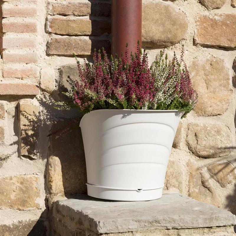Γλάστρα με διπλή δυνατότητα τοποθέτησης σε τοίχους ή κολώνες και στύλους με διάμετρο έως 10 εκατοστά, συνολικής χωρητικότητας 10 λίτρων, από πλαστικό φιλικό προς το περιβάλλον, με μέγιστη αντοχή στο χρόνο και ανθεκτικό στις ακραίες καιρικές συνθήκες και στην υπεριώδη ακτινοβολία UV.