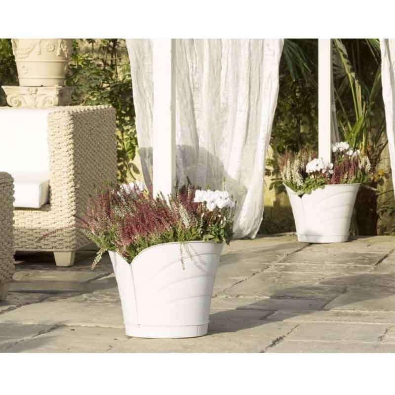 Γλάστρα ημικυκλική κρεμαστή τοίχου ή κολώνας 35x39x30cm/10lt πλαστική λευκή TULIPANO
