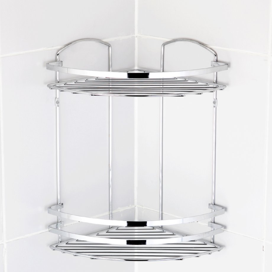 Γωνιακή ραφιέρα μπάνιου διώροφη από ανοξείδωτο ατσάλι (INOX).