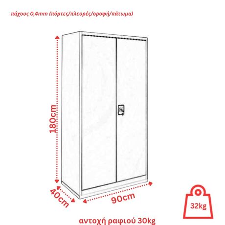 Δίφυλλη μεταλλική ντουλάπα 90x40x180cm με ράφια χωρίς πόδια πάχους 0.4mm