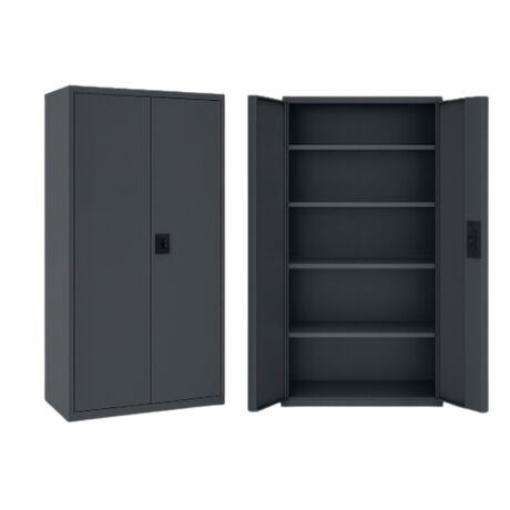 Δίφυλλη μεταλλική ντουλάπα πάχους 0,4mm με ηλεκτροστατική βαφή για υψηλή αντοχή σε καιρικές συνθήκες και διάβρωση. Διαθέτει 4 ρυθμιζόμενα μεταλλικά ράφια (5 αποθηκευτικούς χώρους), ενισχυμένο πάτωμα, μεταλλικούς μεντεσέδες, κλειδαριά ασφαλείας με 2 αντικλείδια.
