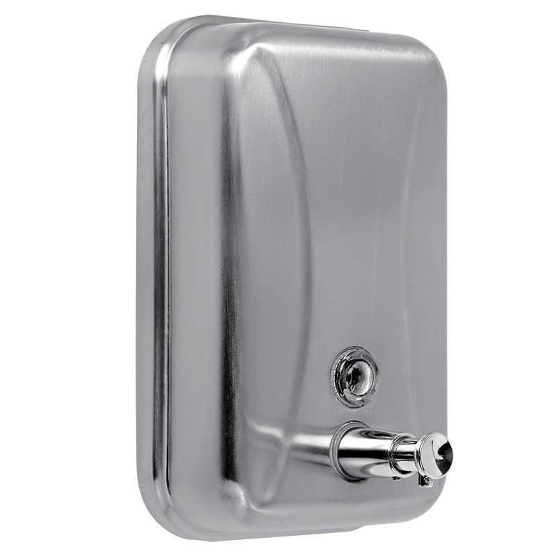 Επιτοίχια θήκη για κρεμοσάπουνο από ανοξείδωτο ατσάλι με σατινέ φινίρισμα σε ασημί χρώμα. Διαθέτει κουμπί το οποίο αφού πατηθεί διανέμει ρυθμιζόμενη ποσότητα υγρού σαπουνιού.