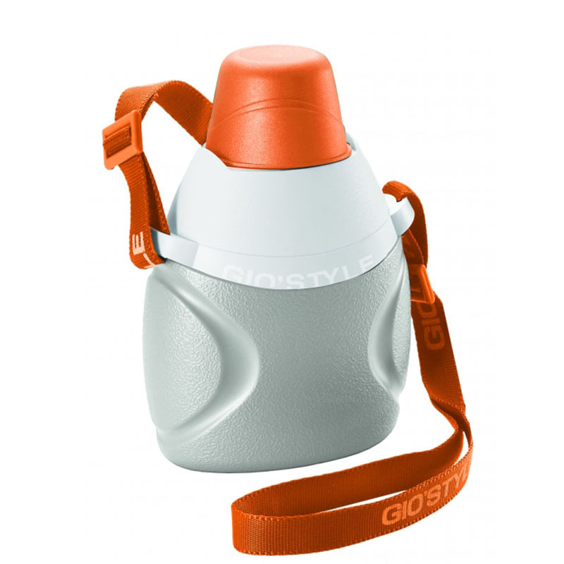 Φορητό παγούρι-θερμός με ρυθμιζόμενο ιμάντα ώμου, προστατευτικό καπάκι και ειδικό κάλυμμα στο στόμιο του παγουριού.
