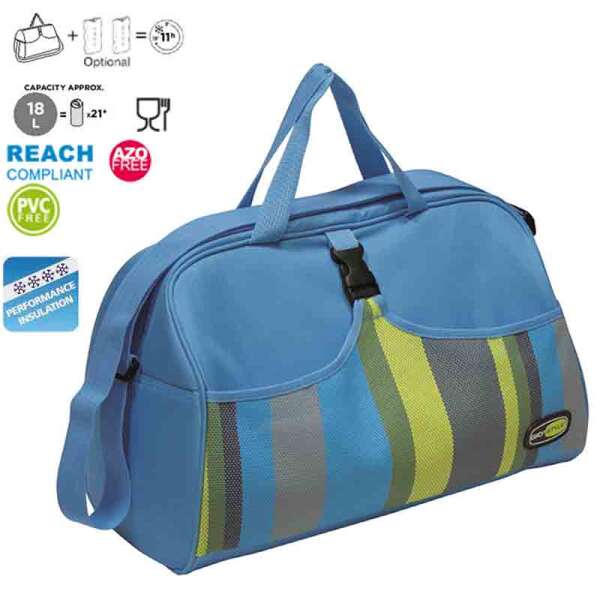 Ισοθερμική τσάντα αδιάβροχη με φερμουάρ, δύο χειρολαβές, ειδική υποδοχή για μπουκάλια, θεσμός και άνοιγμα 180 μοιρών. Διατηρεί τη θερμοκρασία για 2-3 ώρες ενώ συνδυαζόμενη με παγοκύστες μπορεί να φτάσει έως και τις 15-16 ώρες.
