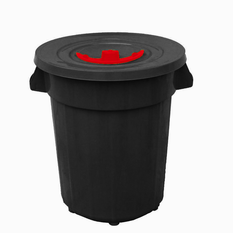 Κάδος απορριμμάτων 120lt Ø56x67cm με καπάκι + ημικυκλική θυρίδα Μαύρο-Κόκκινο