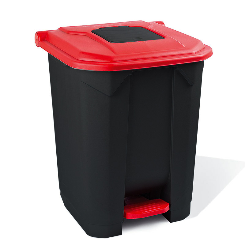 Κάδος απορριμμάτων 50 λίτρων από πλαστικό. Διαθέτει μικρό ανοιγόμενο καπάκι, εσωτερικό πλαστικό κάδο με χειρολαβή, πεντάλ και 2 ρόδες.