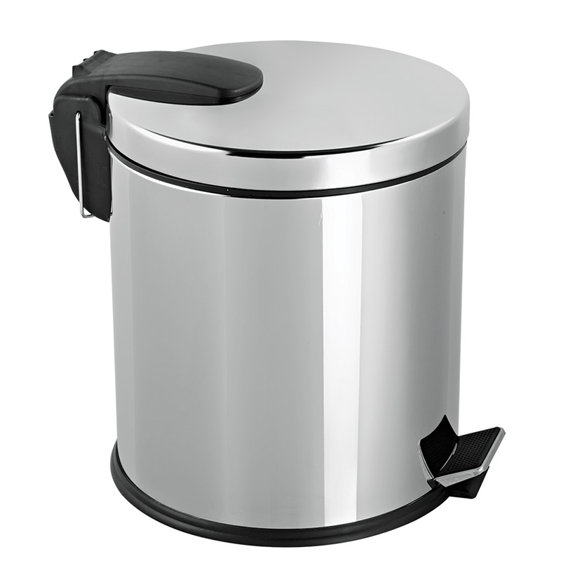 Δοχείο απορριμμάτων από ΙΝΟΧ. Διαθέτει σύστημα ανοίγματος με το πόδι (πεντάλ) και αφαιρούμενο εσωτερικό κάδο με χερολαβή.