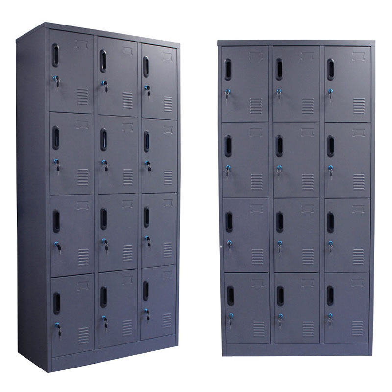 Μεταλλική ντουλάπα – φοριαμός (locker) 12 αποθηκευτικών χώρων κατασκευασμένη εξ’ολοκλήρου από μέταλλο βαμμένο με ηλεκτροστατική βαφή.