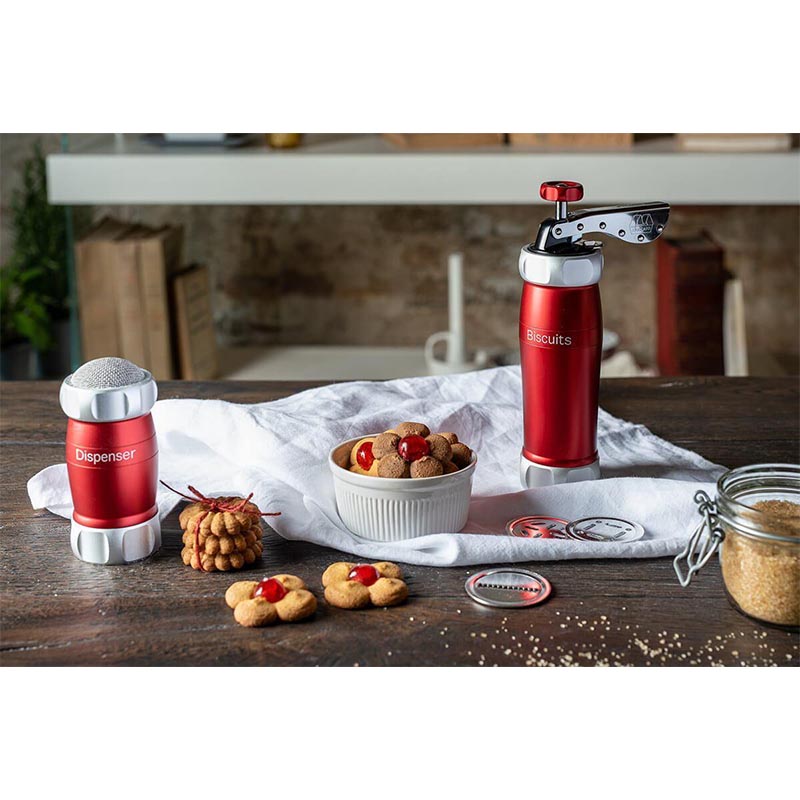 Μπισκοτομηχανή από ανοδιωμένο κράμα αλουμινίου με 20 διαφορετικές κεφαλές (σχέδια) για παρασκευή μπισκότων και κουλουριών της MARCATO.