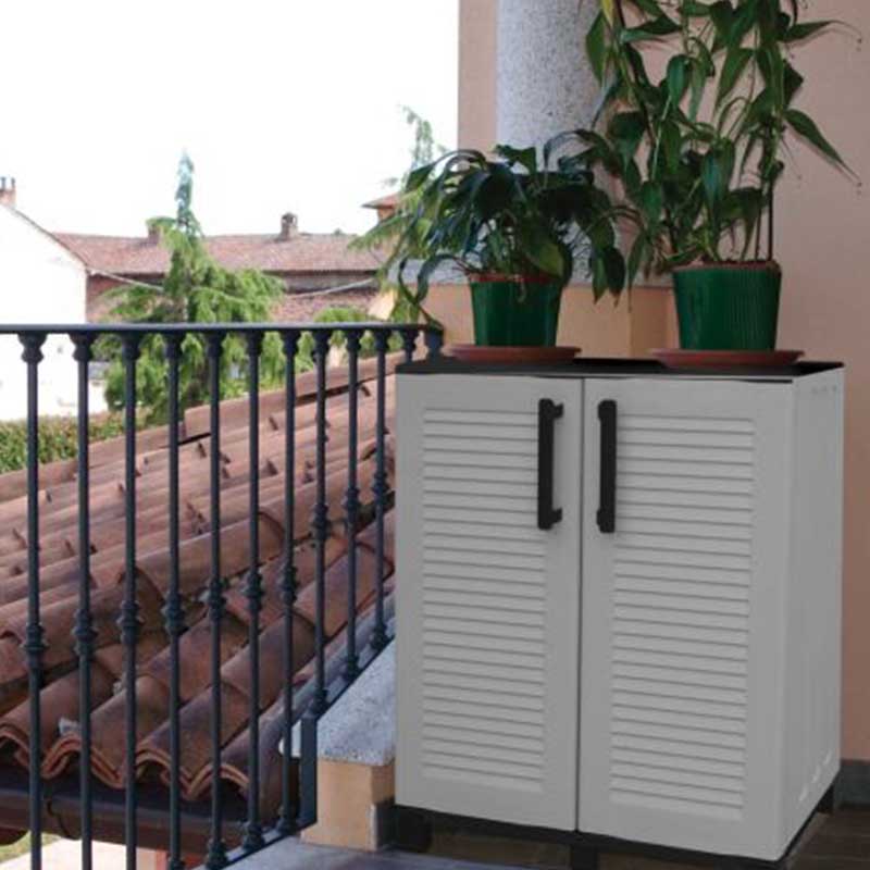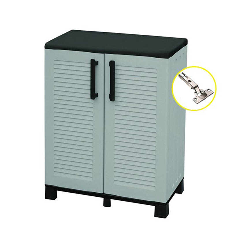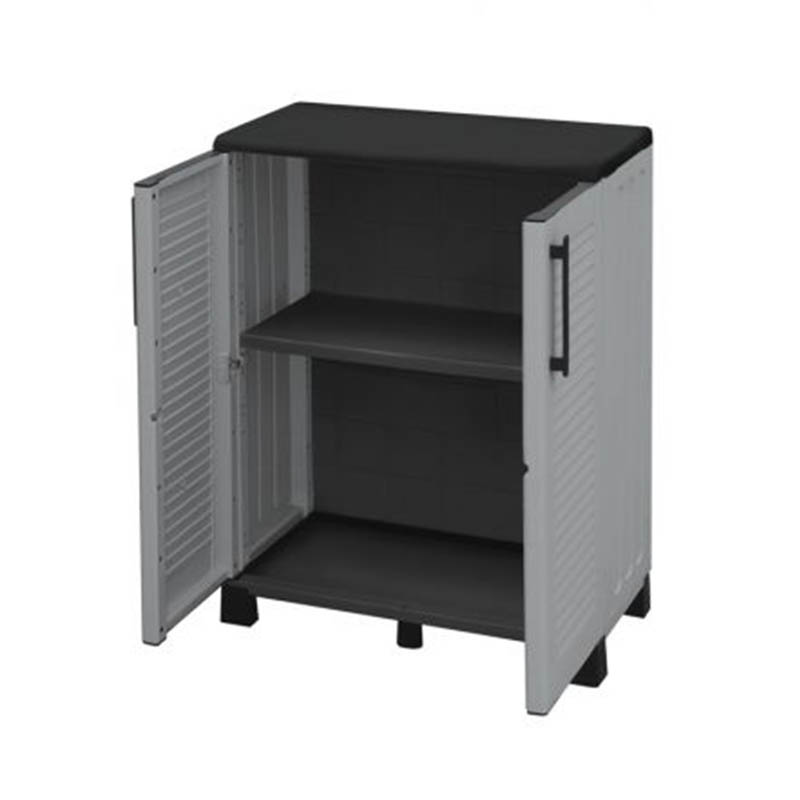 Πλαστική ντουλάπα δίφυλλη από πολυπροπυλένιο με 3 ράφια (αντοχή 25 κιλά το καθένα) και μεταλλικούς μεντεσέδες. Περιλαμβάνει οδηγίες συναρμολόγησης. Προτείνεται το πλαστικό ράφι Artplast.