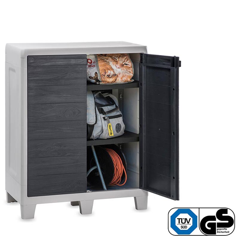 Πλαστική ντουλάπα με 2 ρυθμιζόμενα ράφια, υποδοχή για κλειδαριά και τρύπες για να βιδωθεί στον τοίχο. Υπάρχει δυνατότητα τοποθέτησης επιπλέων ραφιών (234.094M041).