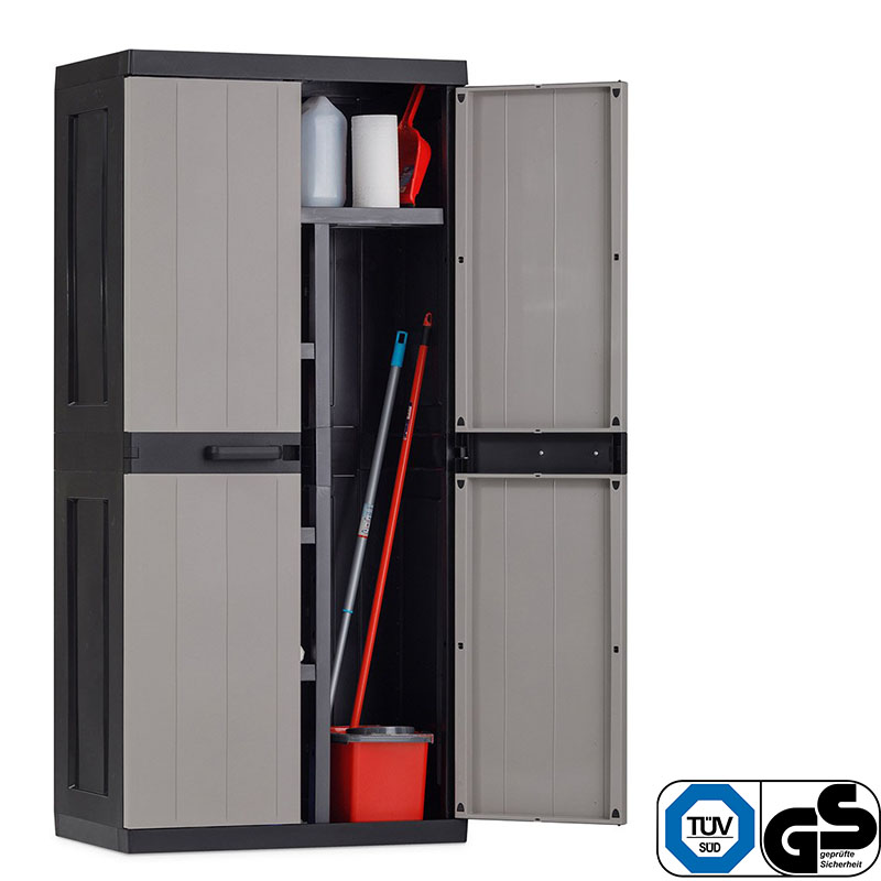 Πλαστική Ντουλάπα με χώρισμα, 3 ρυθμιζόμενα ράφια, υποδοχή για κλειδαριά και τρύπες για να βιδωθεί στον τοίχο.