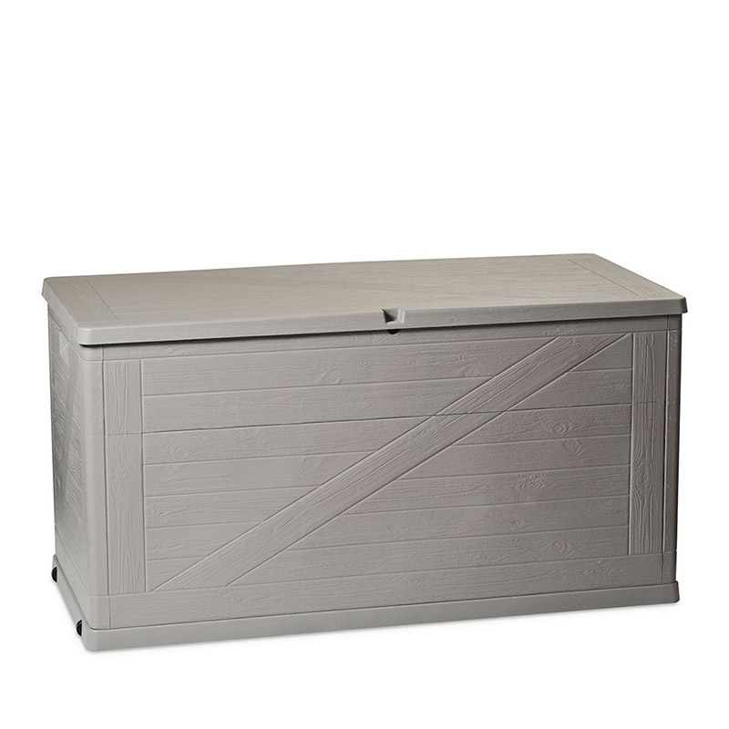 Πλαστικό μπαούλο με υποδοχή για κλειδαριά και ρόδες στη μια πλευρά.