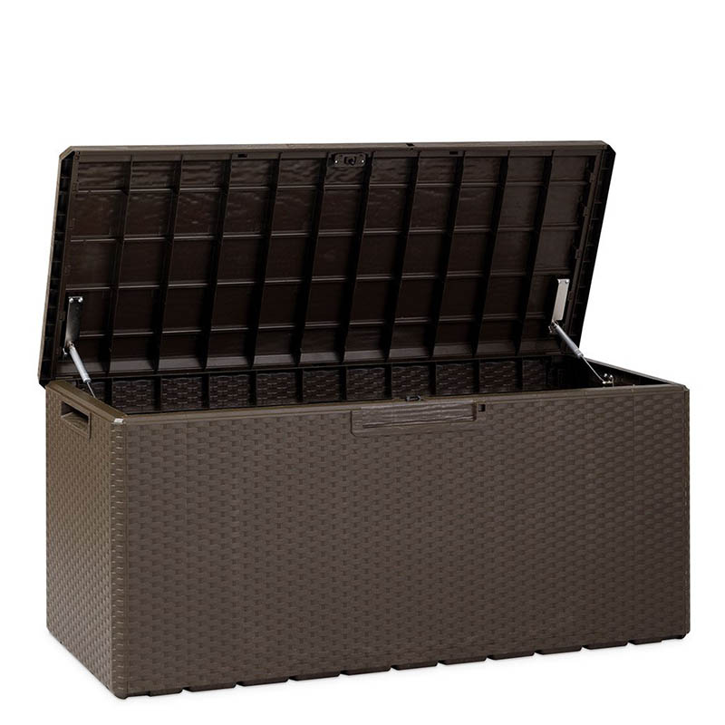 Πλαστικό μπαούλο/κάθισμα με μαξιλάρι, μεταλλικά αμορτισέρ, χειρολαβές και υποδοχή κλειδαριάς.