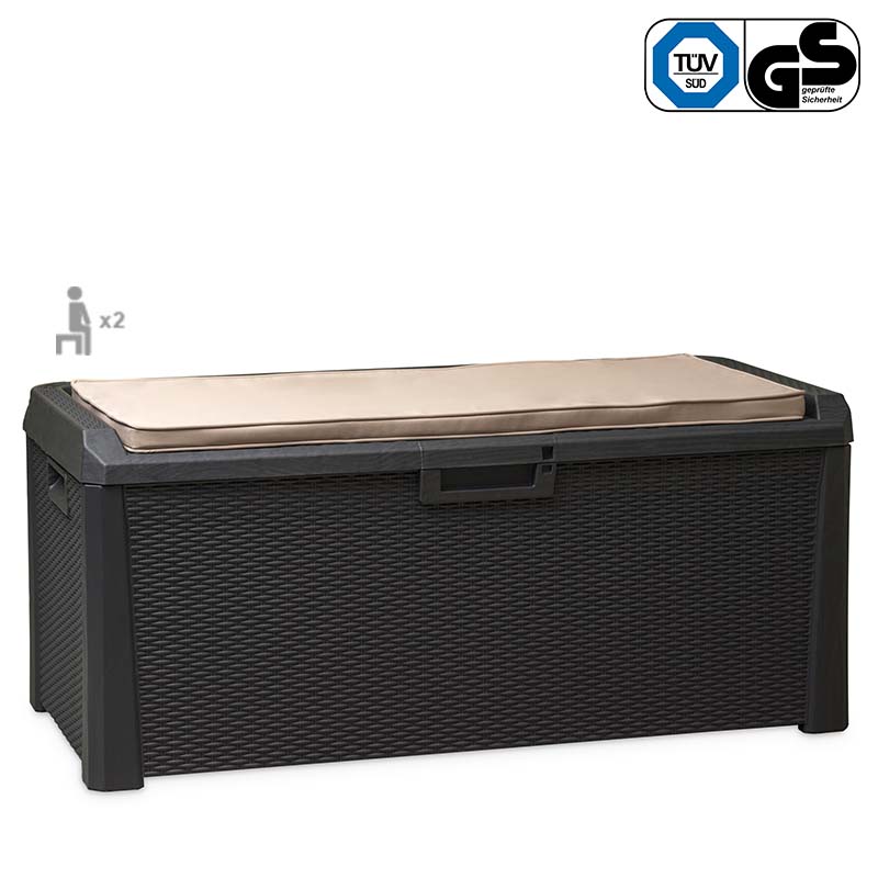 Πλαστικό μπαούλο/κάθισμα με μαξιλάρι, μεταλλικά αμορτισέρ, χειρολαβές και υποδοχή κλειδαριάς.