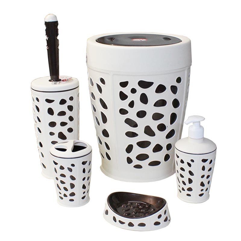 Πλαστικό σετ μπάνιου. Περιλαμβάνει κάδο μπάνιου, πιγκάλ, σαπουνοθήκη, dispenser και οδοντοβουρτσοθήκη.