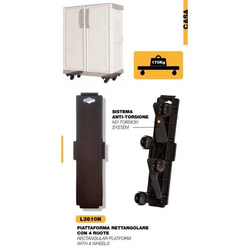 Πλατφόρμα μεταφοράς αντικειμένων από ανθεκτικό πλαστικό (πολυπροπυλένιο) με 4 ρόδες και ανυψωτική ικανότητα 170kg. Η συσκευασία περιλαμβάνει 1 τεμάχιο.
