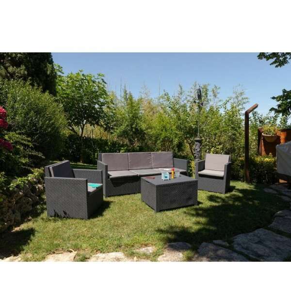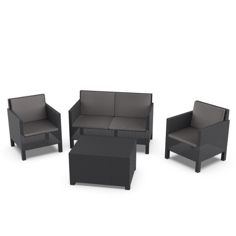 Σετ σαλόνι κήπου 4 ατόμων ( 2 πολυθρόνες-1 καναπές-1 τραπέζι) rattan ανθρακί