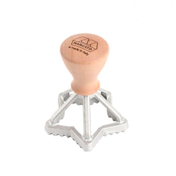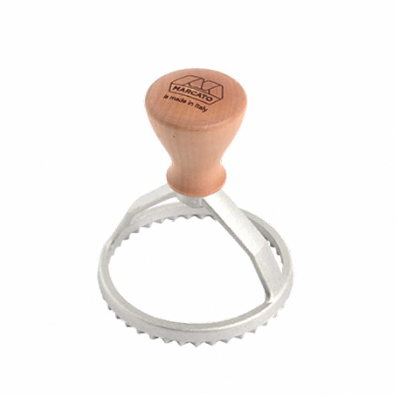 Σφραγίδα-κόφτης για παρασκευή ζυμαρικών Ravioli, μπισκότων κ.α. με σχέδιο κύκλος (80mm) από ανοδιωμένο κράμα αλουμινίου με ξύλινη χειρολαβή της MARCATO.