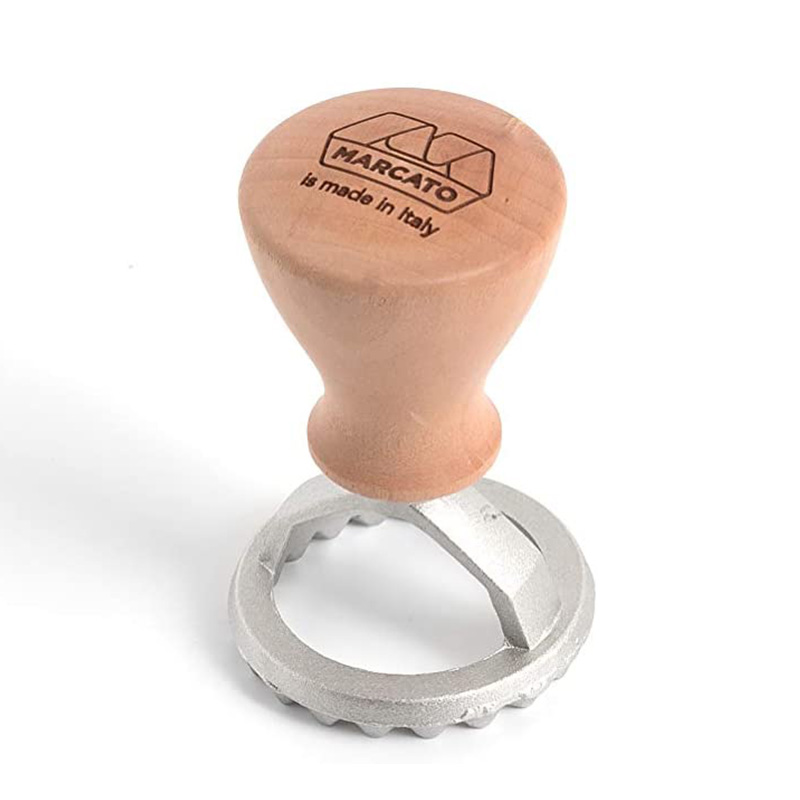 Σφραγίδα-κόφτης για παρασκευή ζυμαρικών Ravioli, μπισκότων κ.α. με σχέδιο κύκλος (48mm) από ανοδιωμένο κράμα αλουμινίου με ξύλινη χειρολαβή της MARCATO.