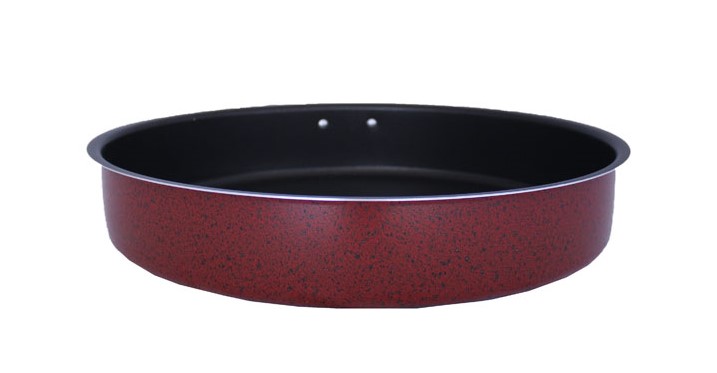 Στρογγυλό ταψί από αλουμίνιο με αντικολλητική εσωτερική επίστρωση και χειρολαβή.