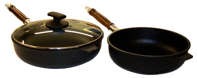 Αντικολλητικό τηγάνι από μέταλλο με αντικολλητική επίστρωση και ξύλινη αφαιρούμενη χειρολαβή.