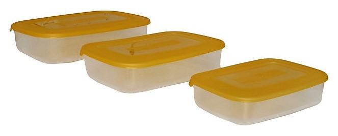 Δοχείο  τροφίμων από πλαστικό σε διάφανο χρώμα με κίτρινο καπάκι.