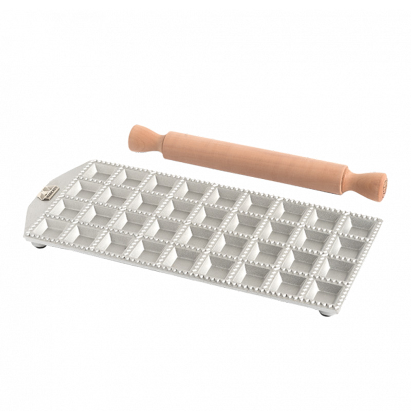 Διαθέτει 36 θέσεις για ζυμαρικά Ravioli, χειρολαβή στη μία άκρη για διευκόλυνση στη χρήση και τη μεταφορά, πλάστη από συμπαγές ξύλο και αντιολισθητικά πατάκια.