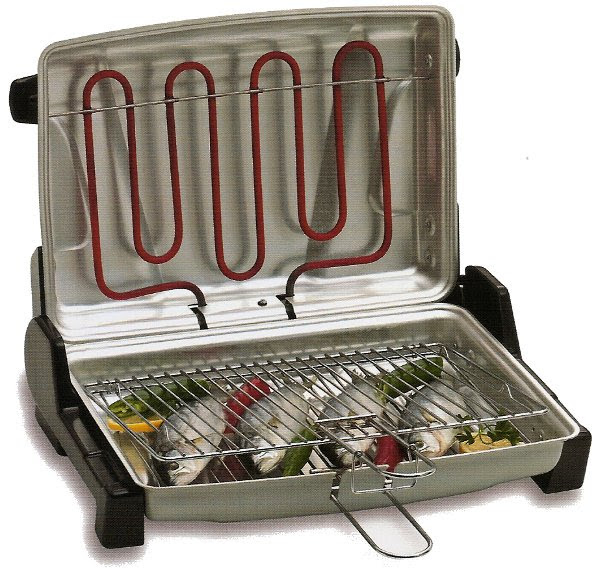 Ορθογώνια ψηστιέρα 1200W από αλουμίνιο. Διαθέτει διακόπτη on/off, αποσπώμενη επινικελωμένη σχάρα, 2 χειρολαβές από βακελίτη και εργονομικό καπάκι το οποίο ανοίγει μέχρι 105° και μπορεί να σταθεί κατακόρυφα.