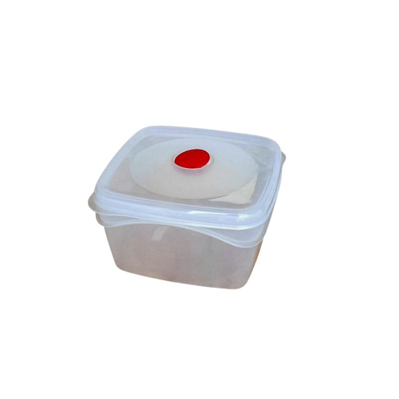 Τετράγωνο φαγητοδοχείο 1lt, Ιταλικής παραγωγής, από πλαστικό κατάλληλο για τρόφιμα και ανθεκτικό έως 100°C. Διαθέτει βαλβίδα καπακιού για αποθήκευση σε συνθήκες κενού, παρατείνοντας τη φρεσκάδα των τροφίμων. Κατάλληλο για ψυγείο, κατάψυξη και φούρνο μικροκυμάτων (με ανοιχτή βαλβίδα), με διάφανο ή χρωματιστό καπάκι.