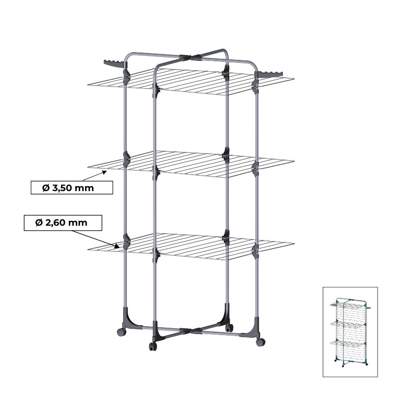 Απλώστρα δαπέδου με πτυσσόμενα μέρη και μέγιστο μήκος απλώματος 30m από αλουμίνιο με ρόδες.