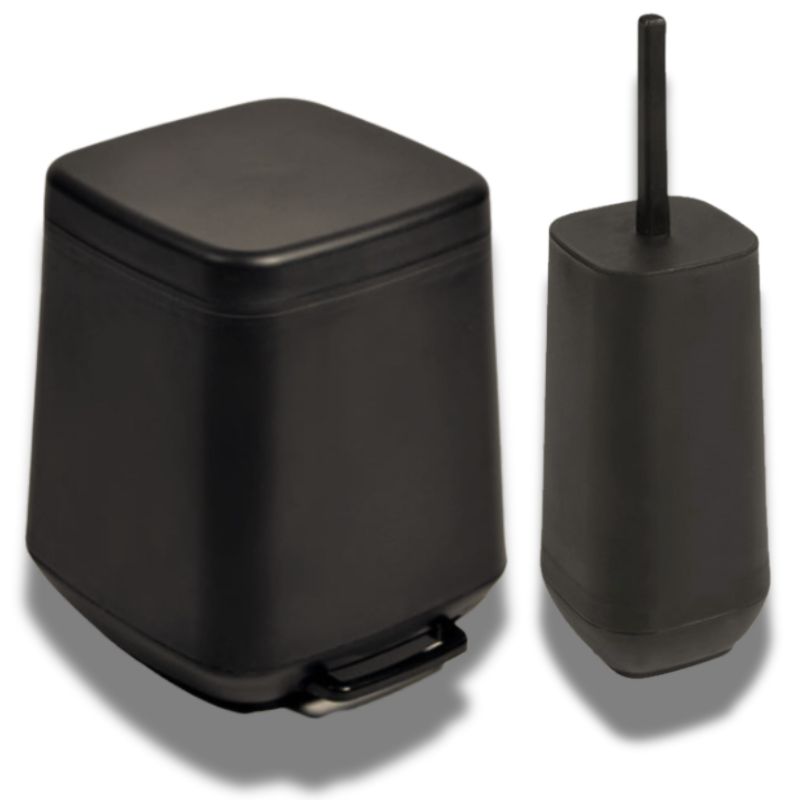TAFLINE σετ κάδος μπάνιου με πεντάλ 19.5lt με εσωτερικό κάδο 7lt και πιγκάλ πλαστικό Soft Close Matte Μαύρο