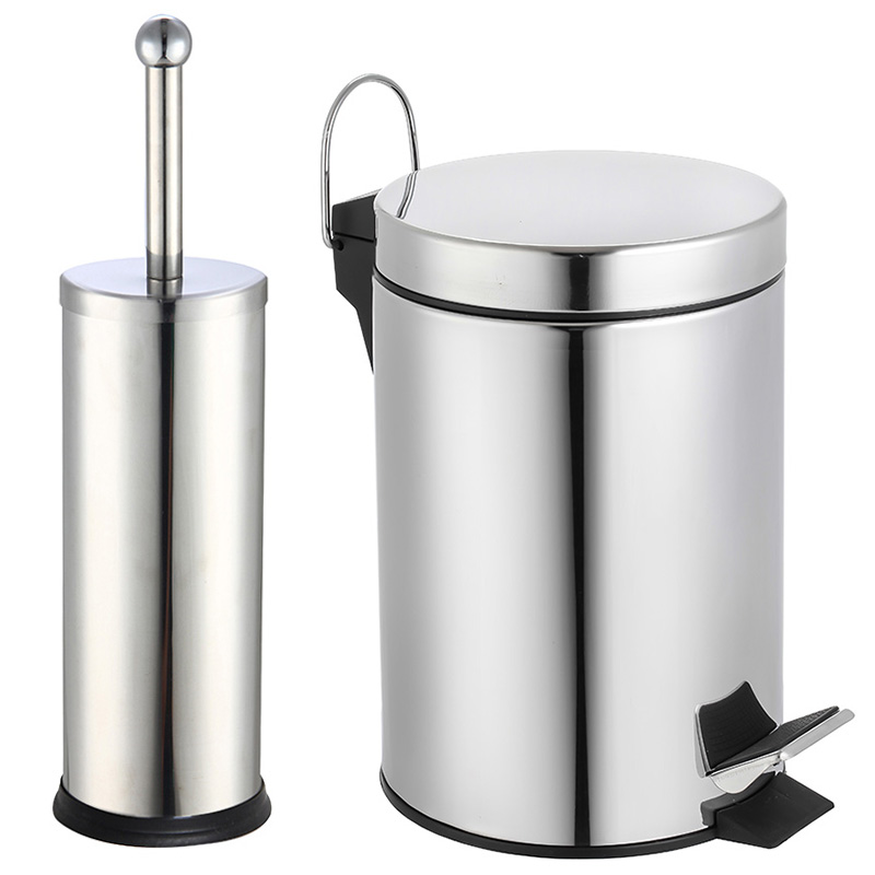 Σετ δοχείο απορριμάτων και πιγκάλ από ανοξείδωτο ατσάλι. Το δοχείο διαθέτει σύστημα ανοίγματος με το πόδι (πεντάλ) και αφαιρούμενο εσωτερικό κάδο όπως και το πιγκάλ.